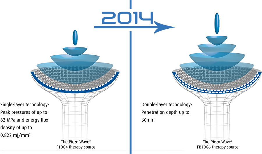 La recentissima commercializzazione di un generatore di tipo piezoelettrico dotato di un doppio strato attivo quindi di una straordinaria intensità e reale focalizzazione, per una maggiore profondità di azione, mi ha spinto ad associare l’esperienza accumulata in oltre 80.000 trattamenti a questo nuovo strumento che oggi rappresenta, a mio parere, lo “stato dell’arte” per potenza, sicurezza, efficacia e tollerabilità.